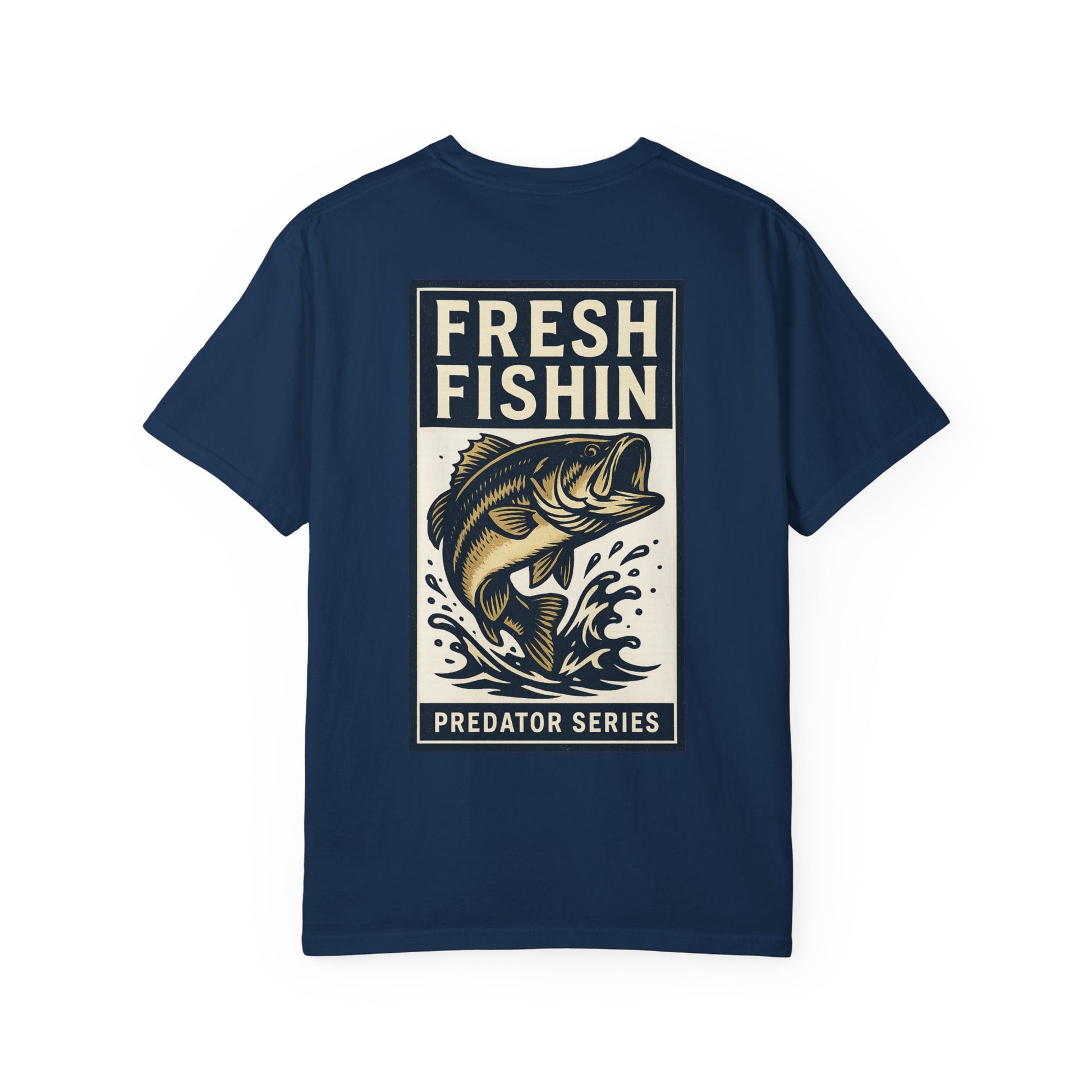 This garment-dyed tee carries the easy confidence of a weekend on the water. Soft, broken-in cotton and a relaxed fit let you move freely while the vintage-inspired “Fresh Fishin” artwork stakes its claim on the back — a bold leaping bass framed like a classic sport-poster. Wear it on early mornings at the boat ramp, at the pier with friends, or when you’re chasing that calm hour before sunrise. The subtle chest print keeps it low-key up front, while the back graphic shows you mean business when it comes to the chase.